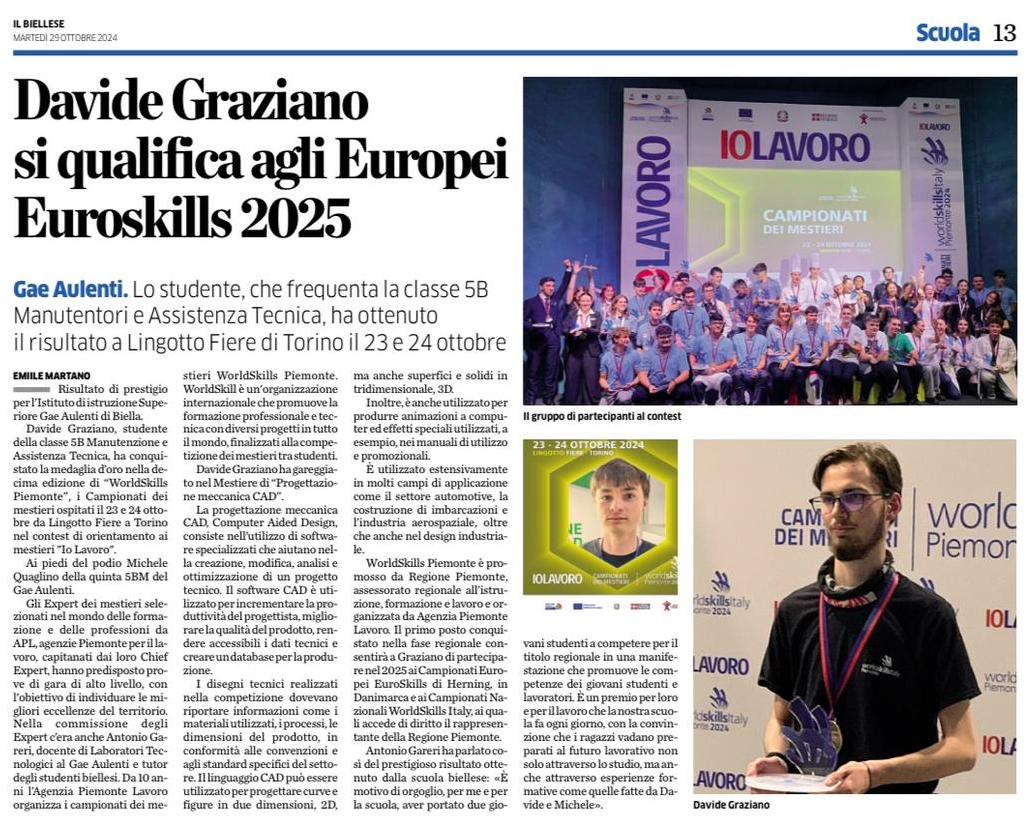 In questa competizione si sono registrati due importanti risultati: Davide Graziano della classe 5B Manutenzione e Assistenza Tecnica si è classificato primo, conquistando la medaglia d'oro, mentre Michele Quaglino si è classifcato ai piedi del podio. Davide Graziano, con questo prestigioso risultato, potrà partecipare nel 2025 ai Campionati Europei EuroSkills di Herning in Danimarca e ai Campionati Nazionali WorldSkills Italy, ai quali accede di diritto come rappresentante della Regione Piemonte
